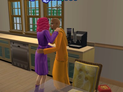 She hasn't even had time to take her coat off, and he's charming her with his suave moves.