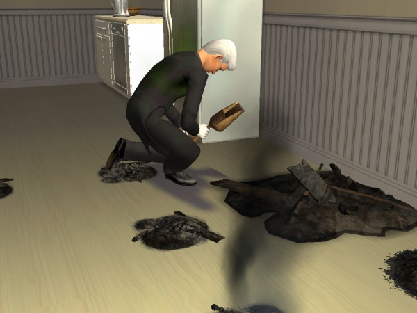 He's ungrateful. "These fire service people really ought to clean up the great big piles of ashes they leave behind. Redecorating the kitchen is going to mean I am behind on the flower arranging for the master bedroom."