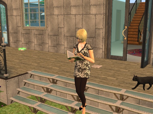 Kofi loves reading. She goes everywhere with her nose in a book. "Look out you don't trip over the cat."