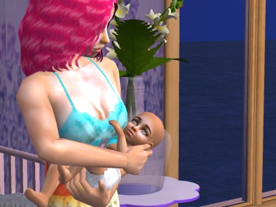 Awww, look who has his mother's eyes. And he's bald, just like Papa.