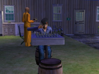 He doesn't seem to be the sharpest hammer in the drawer, since he is playing chess against himself in the rain, and losing.
